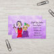Hair Stylist Business Name Beauty Salon Business Card with cartoon modern hair dresser and kid with mohawk.