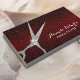 Hair Stylist Modern Burgundy Red Glitter Scissor Beauty Salon Business Cards.