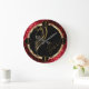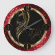 Clock. Hair Stylist design featured in a sophisticated dark red and black leopard skin pattern and red glitter with with faux gold girl outline accent and faux gold script font.