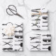 Hair Dresser salon themed wrapping paper showing tools of the trade like a comb, blow dryer, straighteners and hair pins