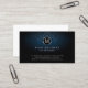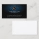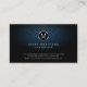 This hairdresser business card features your monogram letter within a chrome circle. Your name and title appear below this monogram letter and your contact details appear on the lower edge of the card. The background is a dark blue damask pattern, with a subtle gradient that appears lighter in the centre of the card. Perfect for entertainment, show business, artistic, artistes, artistic skills, general themes.