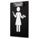 This design features a symbol depicting a hairstylist with scissors and hair dryer.