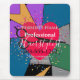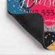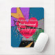 Promotional Mousepad for a Hairstylist or Barber - HAMbyWhiteGlove - Just choose to customise within the personalise option to add your own text. If you need help customising this design, call 203-302-0337 or use the chat for HAMbyWhiteGlove, Trisha. Design as shown is a bright pinkish-red heart with a scissor graphic over a geometric teal, grey, black, green, purple and gold.