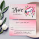 The Hairstylist Modern Watercolor Floral Hairdryer Gift Certificate exudes elegance and charm. The design features trendy script typography with the word "hair," accompanied by a watercolor illustration of a hairdryer and delicate flowers set against a blush ombre pink background. Your name appears in capital lettering on the front for a personalised touch. The back also includes spaces for the recipient's name, the amount, making it a thoughtful and stylish gift option for any occasion. Perfect for hair salons and stylists looking to offer a memorable gifting experience.
