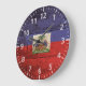 Haiti Flag on Old Wood Grain Large Clock