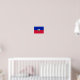 The Haitian flag is a horizontal bicolour with in the centre an emblem. The used colours in the flag are blue, red. The proportion of the Haitian flag is 3:5. The Flag of Haiti was adopted in 1986. The first use of the current flag design was in 1806. The last change to the current Haitian flag design was in 1986.
