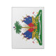 This design features the national coat of arms of Haiti (officially known as the Republic of Haiti), which is a country on the island of Hispaniola in the Greater Antilles archipelago of the Caribbean Sea. Haiti is located to the east of Cuba and Jamaica and south of The Bahamas and the Turks and Caicos Islands. Haiti occupies the western portion of Hispaniola, the island it shares with the Dominican Republic. Haiti is the most populous country in the Caribbean. The capital and largest city of Haiti is Port-au-Prince.