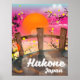 Hakone japan blossom poster. beautiful pink Japanese cartoon travel poster.