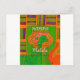 This stylised piece features a bright green giraffe head and neck centrally positioned against a large, decorated orange African pot. An orange shape resembling an elephant's trunk extends from the right side, adding an element of fun and surprise. The background is divided into rectangles of orange, purple, and green, creating a lively patchwork effect. The phrase "HAKUNA MATATA" is prominently displayed in a stylised font, with "Hakuna" above the giraffe's head and "Matata" below.
