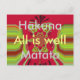 Hakuna Matata all is well postcard pattern Red Hakuna Matata pattern. Peace Love and unity with Go'd speed is what I wish you during this summer festival season all around the world. These cool awesome edgy designs will WOW your heart. Remember Hakuna Matata always as these retro vintage designs will make that perfect gift for that perfect occasion you might have been waiting for. Share the love of these products on this store to your friends and relatives using this link www.zazzle.com/achempong You just never know someone might gift you one of the greatest presents which might have been on your WISH LIST.