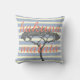 Pillow with black ink pen tree drawing on blue and cream striped background. Text: Hakuna Matata. Beach home holiday decoration. Created with a smile by iolantesdesigns :-)!