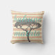 Pillow with black ink pen tree drawing on pink and cream striped background. Text: Hakuna Matata. Beach home holiday decoration. Created with a smile by iolantesdesigns :-)!
