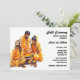 A beautiful watercolor graphic featuring an Indian bride and groom wearing traditional wedding outfits crouching down behind a large pot filled with turmeric spice. Next to them is an Indian man with long hair sitting cross legged on the ground, holding turmeric powder in his hand. The people are set against a white background that has black text templates on it for your custom wording. This elegant, trendy and modern design has a further template on the back for additional details you may want to add. If not required, simply delete the wording. Celebrate this pre wedding ceremony with friends and family to ensure that the bride and groom receive protection, blessings and purificaton. This invitation is ideal for any Sangeet; Hindi; Hena; Mehndi or Mhindi ceremony.