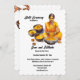 Celebrate the bride to be or the bridal couple with this generativecontent watercolor Indian woman wearing an orange yellow coloured sari. She is sitting cross legged behind a bowl filled with turmeric powder and next to smaller bowls filled with the same spice. Invite friends and family to share their blessings, protection and purfication of the bride and groom prior to their wedding day. Black templates for your custom wording appear on the stark white background and a further one on the back for additional information that your guests may require. If no extra detail is needed, siimply delete the wording on the back. This striking graphic design is ideal to celebrate Mehndi; Mehendi; Sangeet or any ethnic Asian celebration in favour of a bridal couple.
