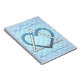 Beautiful, versatile, personalised spiral notebook features an original digital painting by Leslie Sigal Javorek of a highly stylised Star of David created from an interlocking heart & triangle made of diamonds & sapphires. The title "Halevei" (Yiddish for "What If..."), subtitle "My Dreams & Wishes", and name at bottom are customisable else clear fields.