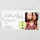 A cut green apple adds dimension to this Rosh Hashanah photo card. L'Shanah Tovah is written above in a rough script font with the Hebrew lettering tucked underneath. Add a personal message below and your own photo to the right. Available with matching products.