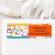 These return address labels have a mid-century modern design divided into quarters. Each quarter is divided into half solid and half skewed rectangles in yellow, blue, pink, orange, green, and red.