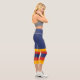 Three-color design in half solid and then with stripes. Horizontal lines in three colors for your sporty Capri leggings. Add your name on the high waist athleisure. This variant is the retro solid blue, yellow and red version.