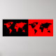 half black/ half red world map poster