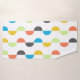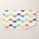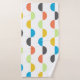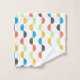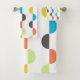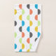 This towel set has a mid-century modern design of vertical lines with half circles running along them in retro colours.