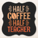 Funny coffee design for the teacher who loves their coffee, features a coffee bean and text that reads Half Coffee Half Teacher! Teacher coffee design mugs, stickers, bags, pillows, T-shirts, and more!