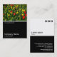 A business card template design with a white edged black lower half. The front design includes a photo or artwork in the top half. The same theme is repeated on the back without the image, allowing room for other details and further customisation. The three squares motif used as a decorative feature on the back is from one of Zazzle's useful picture fonts and can be used as a decorative feature or replaced with your own logo or decoration.