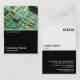 A business card template design with a white edged black lower half. The front design includes a photo or artwork in the top half. The same theme is repeated on the back without the image, allowing room for other details and further customisation. The three squares motif used as a decorative feature on the back is from one of Zazzle's useful picture fonts and can be used as a decorative feature or replaced with your own logo or decoration.