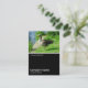 A business card template design with a white edged black lower half. The front design includes a photo or artwork in the top half. The same theme is repeated on the back without the image, allowing room for other details and further customisation. The three squares motif used as a decorative feature on the back is from one of Zazzle's useful picture fonts and can be used as a decorative feature or replaced with your own logo or decoration.