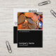 A business card template design with a white edged black lower half. The front design includes a photo or artwork in the top half. The same theme is repeated on the back without the image, allowing room for other details and further customisation. The three squares motif used as a decorative feature on the back is from one of Zazzle's useful picture fonts and can be used as a decorative feature or replaced with your own logo or decoration.