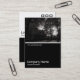 A business card template design with a white edged black lower half. The front design includes a photo or artwork in the top half. The same theme is repeated on the back without the image, allowing room for other details and further customisation. The three squares motif used as a decorative feature on the back is from one of Zazzle's useful picture fonts and can be used as a decorative feature or replaced with your own logo or decoration.