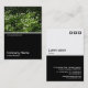 A business card template design with a white edged black lower half. The front design includes a photo or artwork in the top half. The same theme is repeated on the back without the image, allowing room for other details and further customisation. The three squares motif used as a decorative feature on the back is from one of Zazzle's useful picture fonts and can be used as a decorative feature or replaced with your own logo or decoration.