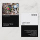 A business card template design with a white edged black lower half. The front design includes a photo or artwork in the top half. The same theme is repeated on the back without the image, allowing room for other details and further customisation. The three squares motif used as a decorative feature on the back is from one of Zazzle's useful picture fonts and can be used as a decorative feature or replaced with your own logo or decoration.