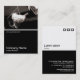 A business card template design with a white edged black lower half. The front design includes a photo or artwork in the top half. The same theme is repeated on the back without the image, allowing room for other details and further customisation. The three squares motif used as a decorative feature on the back is from one of Zazzle's useful picture fonts and can be used as a decorative feature or replaced with your own logo or decoration.