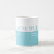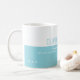 Modern robin egg blue (editable colour) and white coffee-mug personalised with your own name and custom profession (physiotherapist).