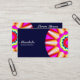 A business card with an attractive half kaleidoscopic mandala motif. Business name etc on the front with other details on the reverse with a variation on the same motif.