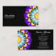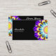 A business card with an attractive half kaleidoscopic mandala motif. Business name etc on the front with other details on the reverse with a variation on the same motif.
