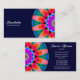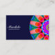 A business card with an attractive half kaleidoscopic mandala motif. Business name etc on the front with other details on the reverse with a variation on the same motif.