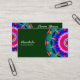A business card with an attractive half kaleidoscopic mandala motif. Business name etc on the front with other details on the reverse with a variation on the same motif.