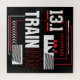 13.1 in Training - 13.1 miles half-marathon running gear. Modern art for men or women half marathon runner. Bold lines and chevron arrows make an abstract inspirational image. >> Red, white and black cutout lettering, typography word art for training to run a half marathon race. >> Customisable artwork. Add YOUR OWN personal name or message. Click "Personalise this template" or create your own additional text, background shape, graphic, etc. to customise the final design.