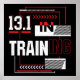 13.1 in Training - 13.1 miles half-marathon running gear. Modern art for men or women half marathon runner. Bold lines and chevron arrows make an abstract inspirational image. > Red, white and black cutout lettering, typography word art for training to run a half marathon race. > Personalise it! Add custom name, photo, or text.