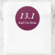 If you've mastered the 1/2 marathon, you'll like our 13.1 And I'm Done Half Marathon Runners Sticker! Cool gift idea for runners. You can easily customise by choosing the background colour of your choice. Priced by the sheet with volume discounts available!