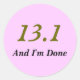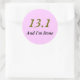 If you've mastered the 1/2 marathon, you'll like our 13.1 And I'm Done Half Marathon Runners Sticker! Cool gift idea for runners. You can easily customise by choosing the background colour of your choice. Priced by the sheet with volume discounts available!