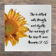 This half sunflower puzzle shows a sunflower photo with the words of Proverbs 31:25 next to the flower. The words are easy to personalise and add your favourite Bible verse or motivational saying. Proverbs 31:25 says that the ideal Christian woman is comfortable in her life now, dignified with no worries, and prepared for whatever the future brings. It's a great Christian birthday gift or gift for a woman you admire. "She is clothed with strength and dignity; she can laugh at the days to come. Proverbs 31 :25"