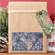 Rectangular photo sticker with the historic architecture of the half-timbered houses with smoking chimneys and the lights on at the start of the evening in the winter in the city Freudenberg near Siegen in Germany.