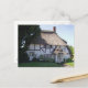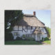 A picturesque half-timbered and whitewashed thatched cottage in the village of Micheldever in Surrey, England.