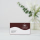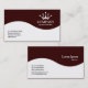 A business card with a bold wave design. Company name and business type or slogan in the header along with a decorative crown logo/symbol, which can be used as a decorative feature or replaced with your own logo. Address details on the front. Name and other details on the back. Suitable for many types of business.