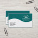 A business card with a bold wave design. Company name and business type or slogan in the header along with a decorative crown logo/symbol, which can be used as a decorative feature or replaced with your own logo. Address details on the front. Name and other details on the back. Suitable for many types of business.