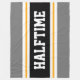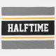This sporty, athletic design features bold HALFTIME text inside a highlighted wide black stripe with double white and yellow racing stripes against grey outer stripes. The text in this design can be personalised.