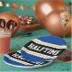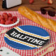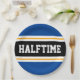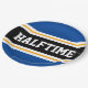 This sporty, athletic design features bold HALFTIME text inside a highlighted wide centre black stripe with white and yellow racing stripes against deep blue outer stripes. The text can be personalised.