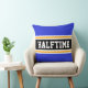 This sporty, colourful design features athletic HALFTIME text inside a highlighted wide black centre stripe with white and yellow racing stripes against royal navy blue outer stripes. The text and colours in this design can be personalised.